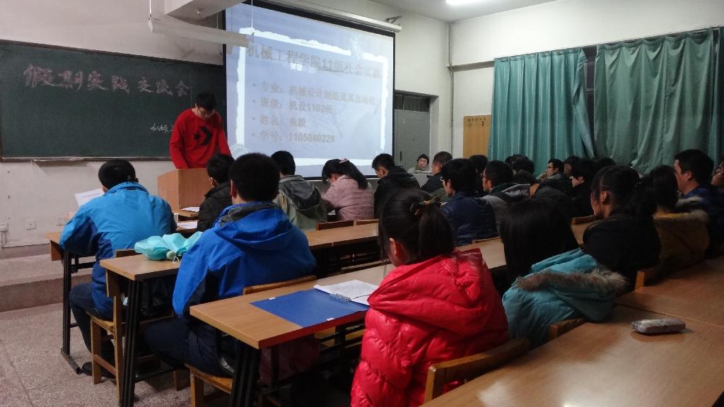 3 月21日晚七点整,我院实践部组织了11级寒假社会实践交流会,到会的有,零八辅导员张立显老师、零九级辅导员杨建涛老师、一零级辅导员陈霂老师、一一级辅导员张耿老师,还有主席团部分成员、学院部分同学。