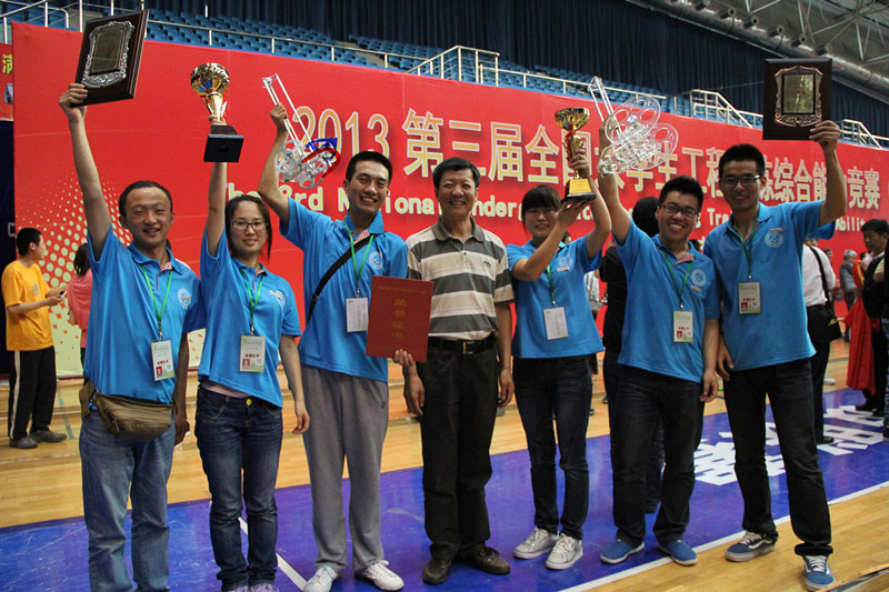 由我校工程训练中心主任尚长春带队、机械学院院长郭卫专家指导,师生共计11人参加了比赛,经过两天紧张有序的角逐,高宇立、袁月、蔡新彬3名同学参加绕“8”字组比赛获得全国二等奖,李重建、徐佩、周镤3名同学参加绕“S”字组获得全国三等奖。