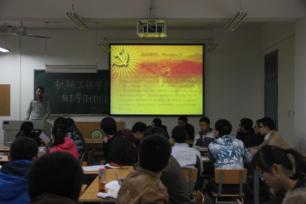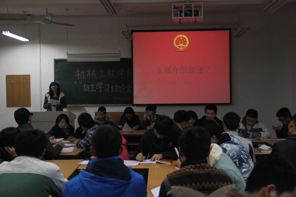 自学讨论活动把学员分为五组,以听、议、答等形式,学习讨论了我院第三党支部的基本情况、党史、基本入党程序和十八大的会议精神。学员们在活跃的抢答环节展示了对党组织的认识和觉悟,也为以后早日入党打下良好的基础。