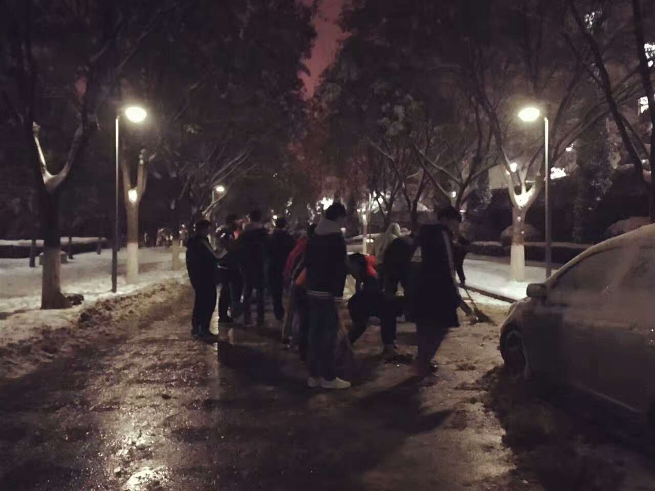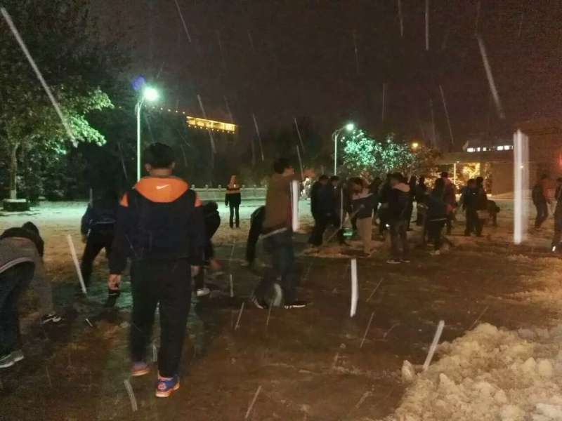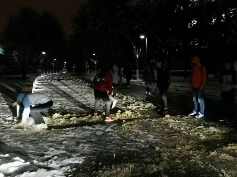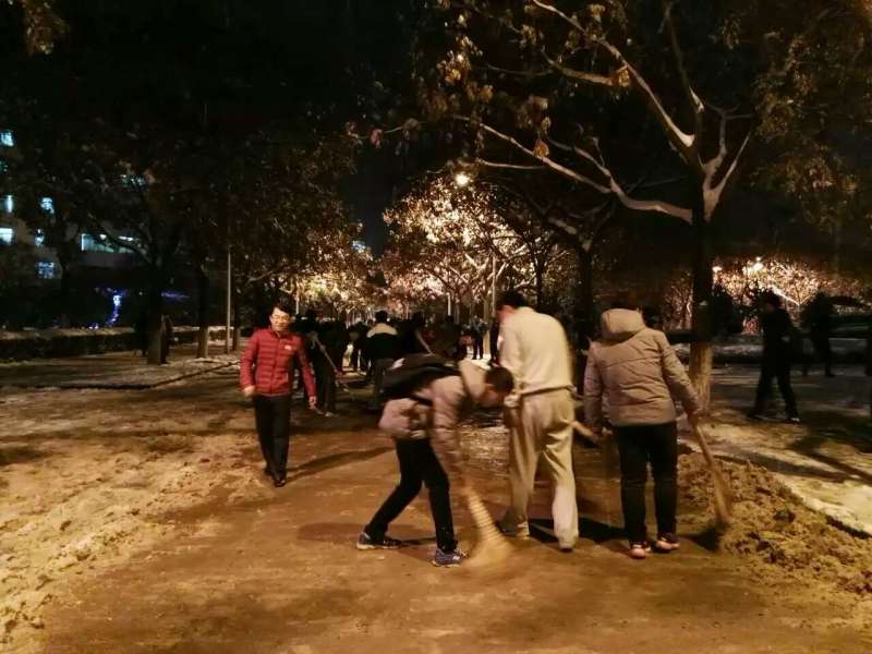 为保证广大师生的出行安全,米兰milan中国学工部于2016年11月22日晚19时30分在临潼校区组织义务扫雪活动。米兰milan吕叻加老师带领2014级40多名同学参加此次扫雪活动。