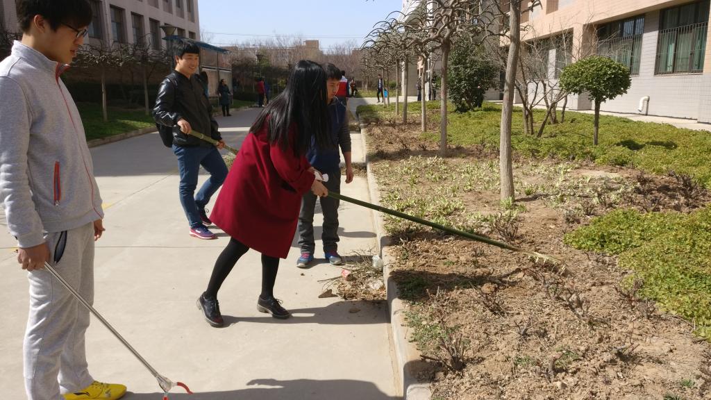 围绕校团委安排,根据我院活动方案,机械学院志愿服务队100余学生沿9号、10号教学楼主干道区域进行清理,从细微处着手,用耙子清扫花坛、绿化带中的落叶,用垃圾钳捡拾果皮、纸屑、烟头,用抹布清除野广告。同学们不怕脏、不怕累,经过3个小时的奋战,责任区环境焕然一新。