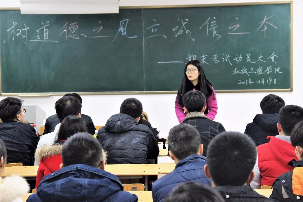 期末考试即将来临,为了提高同学们对期末考试的重视程度,端正考风,严肃考纪,创建优良校风学风,进一步增强学生纪律意识!米兰milan于2017年12月19日晚在临潼校区10教501教室召开2016级“树道德之风,立诚信之本”期末考试动员大会,会议由2016级辅导员杨芝老师主持,各班班长、团支书、学委及生活委员参加。