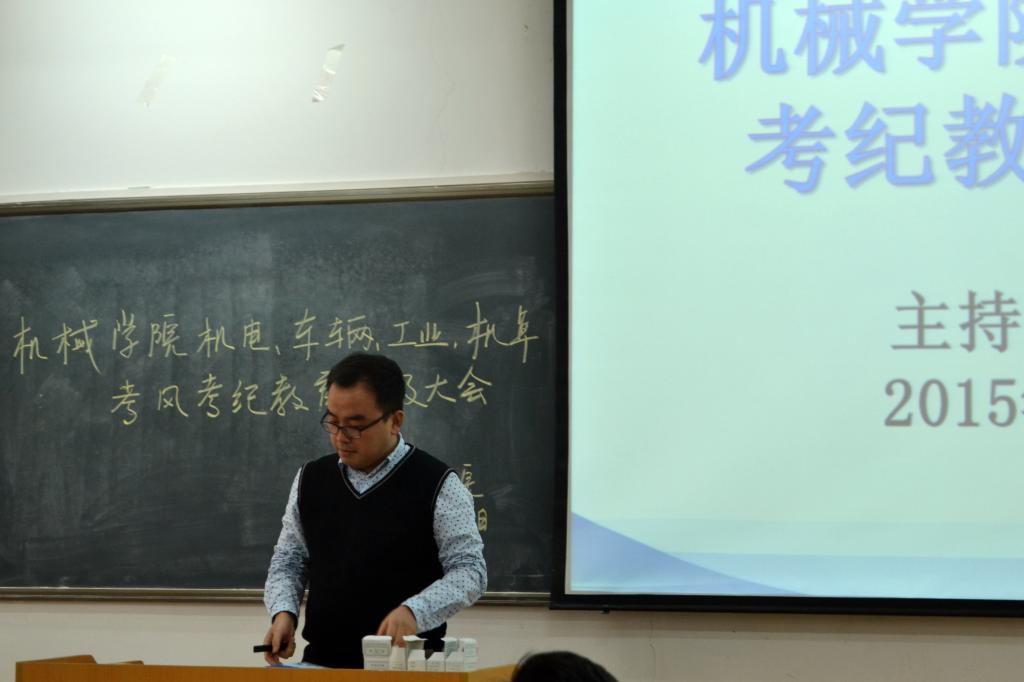 12月22日下午2点,在临潼校区9-109教室机械学院召开了2015级考风考纪教育大会。会议由15级辅导员芮智刚老师主持,15级机电、车辆、工业和机卓班全体学生参加了此次会议。