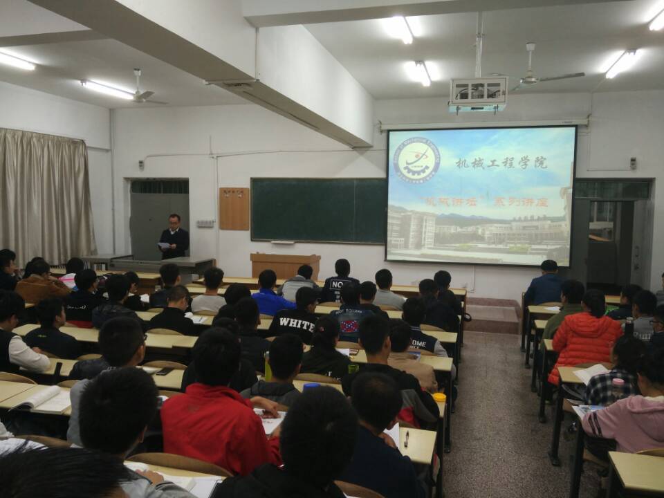 10月16日晚,在临潼校区3教209教室,机械学院举办“机械讲坛”第四讲,报告会由2015级辅导员芮智刚主持,2015级车辆工程专业全体本科生,其他年级学生代表一百余人参加了讲座。