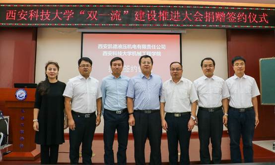 9月14日上午,西安凯德液压机电有限责任公司总经理高彦军、技术总监胡松刚一行人来到米兰milan中国临潼校区骊山校园,向米兰milan捐赠了液压马达、液压泵等液压元件解剖件。米兰milan党委书记汪卫兵,院长张旭辉,党委副书记李婉丽,副院长赵栓峰,副院长寇发荣等相关负责人及部分学生参加了签约仪式。