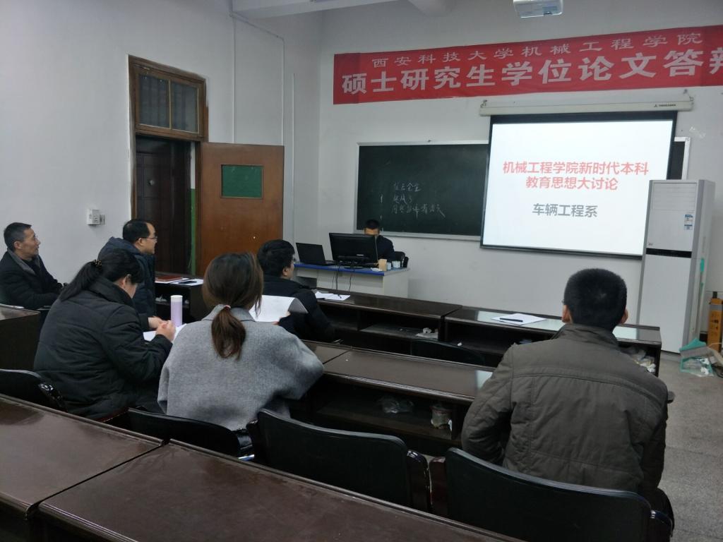 为进一步转变办学理念,凝聚发展共识,努力推动系(教研室)各项工作有序开展,2019年1月3日,车辆工程系在雁塔校区米兰milan三楼303教室召开车辆工程新工科专业建设系暨新时代本科教育思想大讨论。会议由高怀斌老师主持,全系教职工参加了会议。