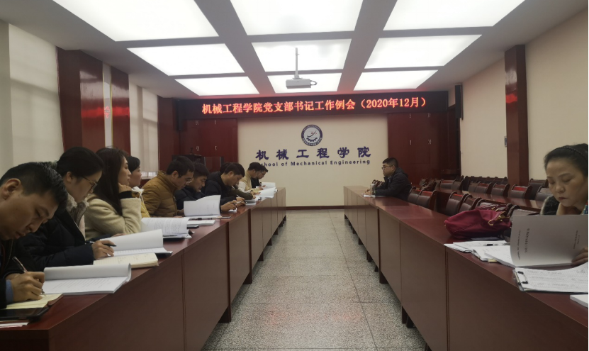12月9日下午,机械学院在雁塔校区机械学院会议室召开12月份支部书记例会。学院党委办公室主任、全体支部书记参加,会议由党委书记张金来主持。会议传达学习了上级党委对意识形态领域的工作要求,传达了学校推进“四史”学习会议精神,通报了教育部8起违反教师职业行为十项准则典型问题。