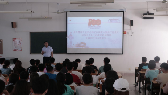 在全党全社会迅速兴起学习贯彻习近平总书记在庆祝中国共产党成立100周年大会上的重要讲话精神的高潮之际,7月8日,机械学院党委书记张金来以“学习贯彻习近平总书记在庆祝中国共产党成立100周年大会上的重要讲话精神,争做新时代合格党员”为题,为学院学生党员、入党积极分子代表及所在支部全体党员100余人讲党课。