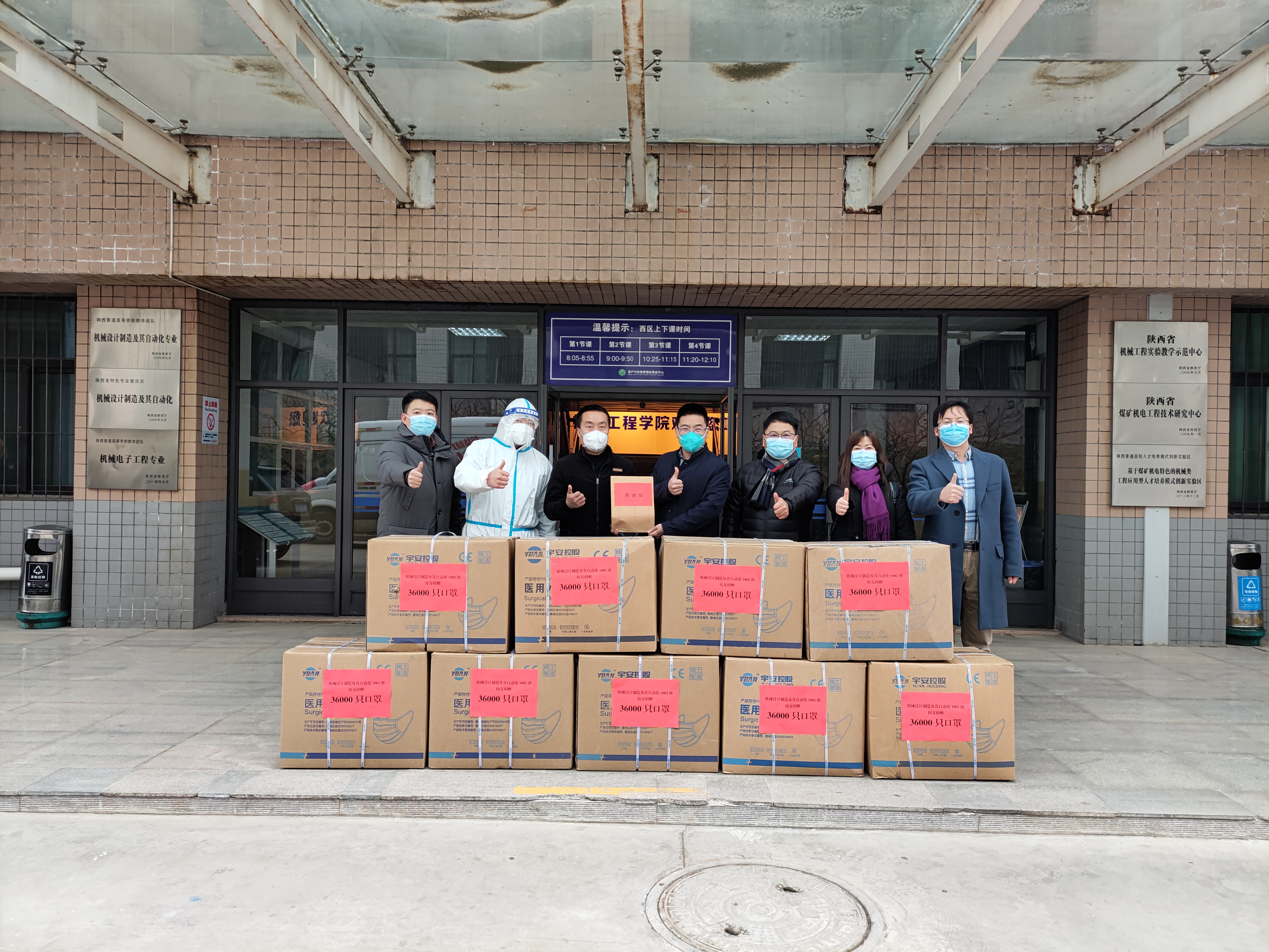 机械设计制造及其自动化1002班自疫情以来通过各种方式积极联系机械学院以表达学院师生的关心、牵挂与问候。1月6日,班长孙永成发起号召后,全班同学积极响应,纷纷向学院捐赠抗疫物资,于1月7日下午送达骊山校园。院长张旭辉向机械校友表达了感谢。机械设计制造及其自动化2010级2班班主任张传伟老师表示,在学校抗击新冠肺炎疫情的关键时刻,同学们心系母校,慷慨解囊,筹集资金为“第二故乡”捐赠口罩的善行义举让母校师生倍感温暖、备受鼓舞、倍添动力,更加坚定了战胜疫情的信心!