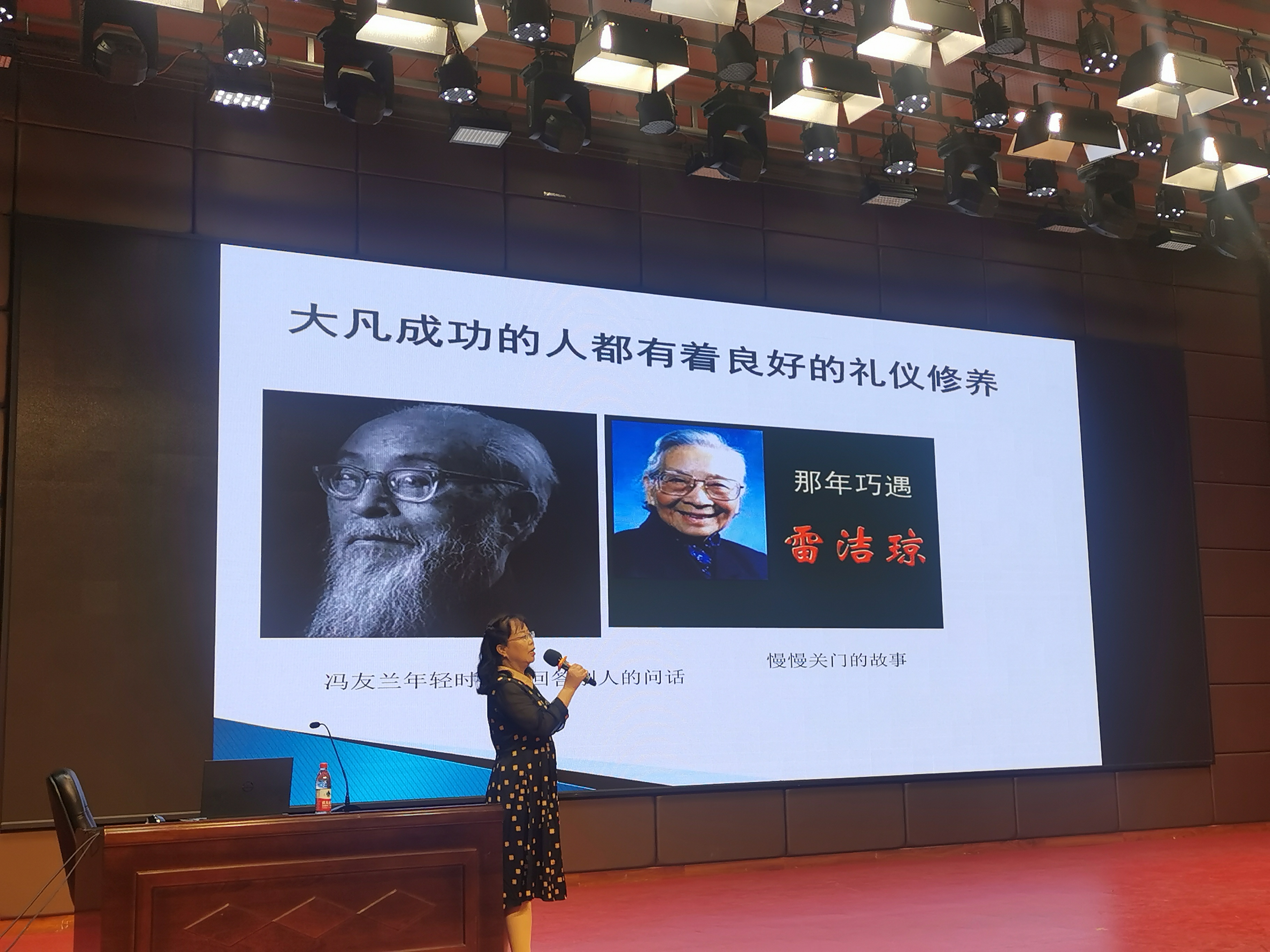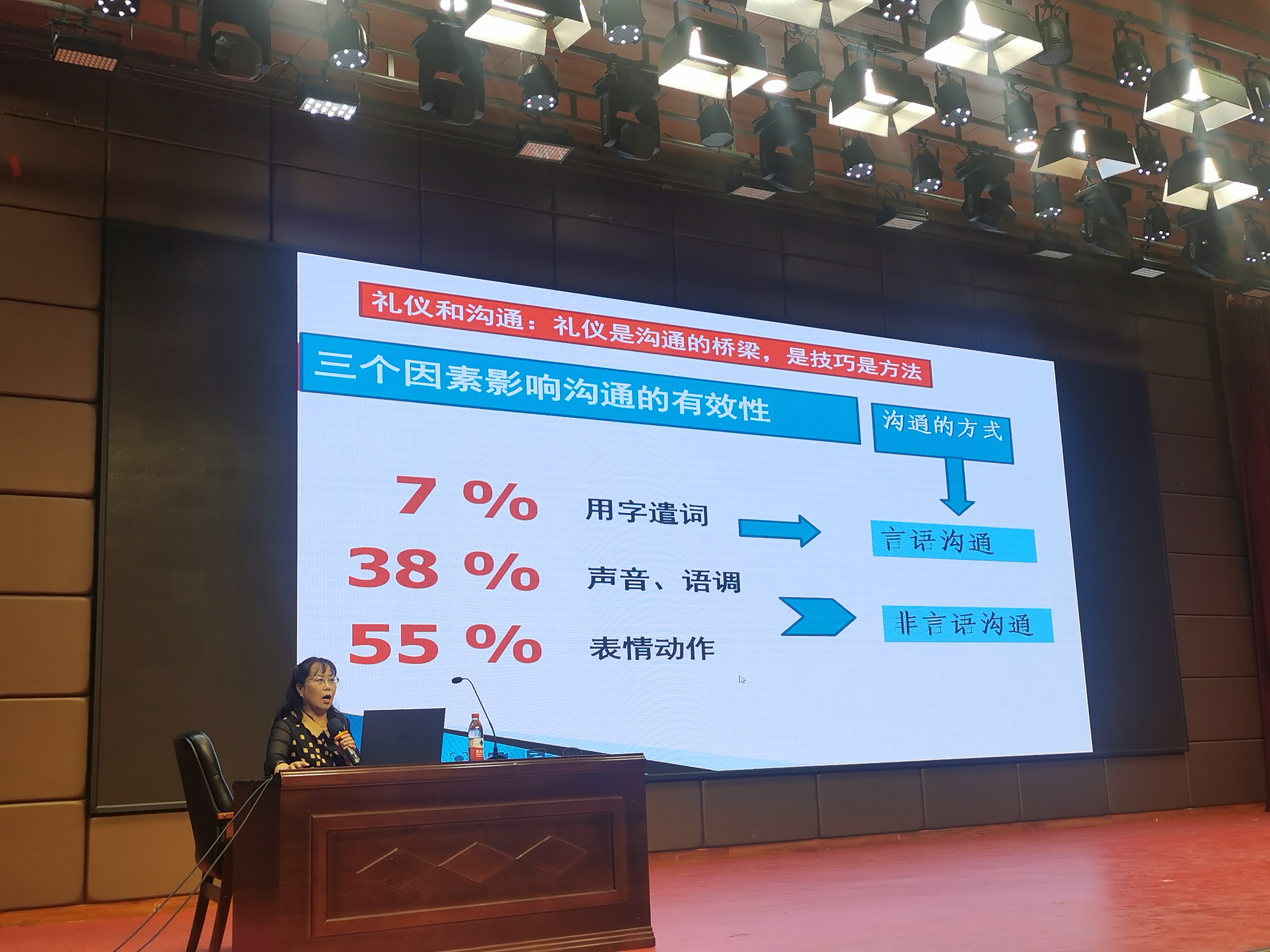 讲座中,荆教授结合实际引入典型礼仪案例,并围绕沟通礼仪的基本概述、言语沟通礼仪及技巧、非言语沟通礼仪及技巧三大部分内容,以良好职业形象的塑造为主线,强调了“尊重和自律”是职业礼仪的核心价值;礼仪对职业发展的重要作用;交际的基本原则和技巧、正确管理自己的仪表,准确掌握职场职业形象和个人仪态基本要领,正确在工作生活中正确使用礼貌用语及礼仪禁忌等注意事项。荆教授的讲授生动幽默,现场气氛热烈活跃。同学们纷纷表示从讲座中受益匪浅,及时指导了同学们全面了解了社交礼仪的规范要求,对同学们即将离校奔赴工作岗位,融入社会起到积极的指导,增强了大家走向社会的自信和勇气。