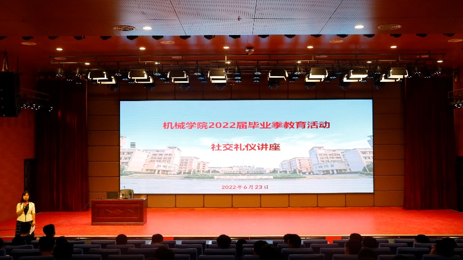 6月23日晚,机械学院在骊山校园煤炭科技中心报告厅举办2022届毕业生社交礼仪专题讲座《沟通礼仪助您成功》。本次讲座由中国高等教育学会公共专业委员会理事,公共关系高级讲师,教育部考试中心授予的高级礼仪导师及高级礼仪训练师,米兰milan中国马克思主义学院荆秀芳副教授主讲,全体2022届毕业生、毕业班辅导员参加学习,机械学院党委副书记尹弘主持讲座。