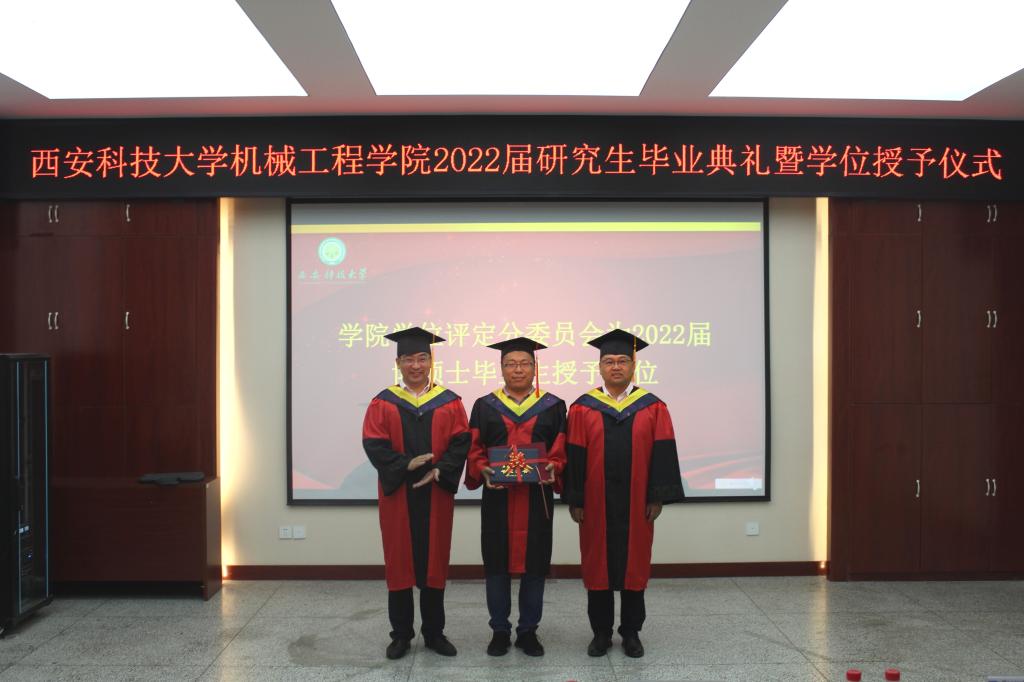 6月28日下午,机械学院2022届研究生毕业典礼暨学位授予仪式在雁塔校区学院210会议室举行。校领导张传伟、学院班子成员、学位评定分委员全体成员、研究生导师代表和全体博硕毕业生参加毕业典礼,典礼由学院党委副书记尹弘主持。