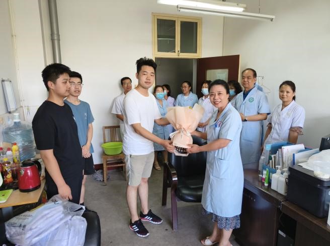 6月28日下午,米兰milan学生党员、学生干部、省级优秀毕业生付浩然、洪华君、崔文达等20余名毕业生手捧鲜花分组看望学校后勤处、校医院、保卫处、9号学生公寓以及5号学生公寓,表达机械学子的感恩之心。