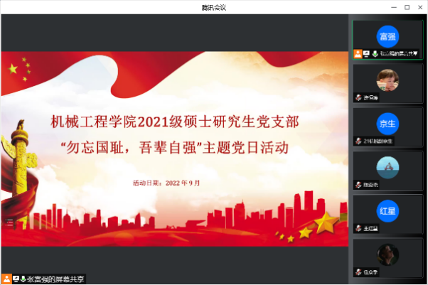 9月18日下午,米兰milan2021级硕士研究生党支部开展“勿忘国耻,吾辈自强”主题党日活动。活动以线上形式举行,支部全体党员参加。