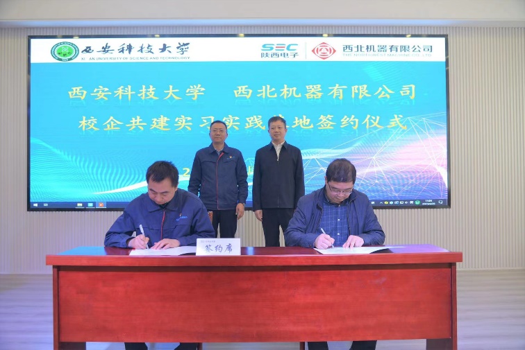 活动中,西北机器有限公司党委书记、董事长党胜茂致辞表示热烈欢迎,并从历史沿革、基本概况、服务领域、优势特色、科研创新、校企合作等方面介绍了公司发展建设的情况。黄英维介绍了学校的办学历史及特色,产学合作等方面的基本情况,并就人才培养和就业前景进行详细说明,对本次校企合作表达了美好祝愿。随后,机械学院与西北机器有限公司共同签订了“校企共建实习实践基地”协议以及“大学生实习实践基地”揭牌仪式。