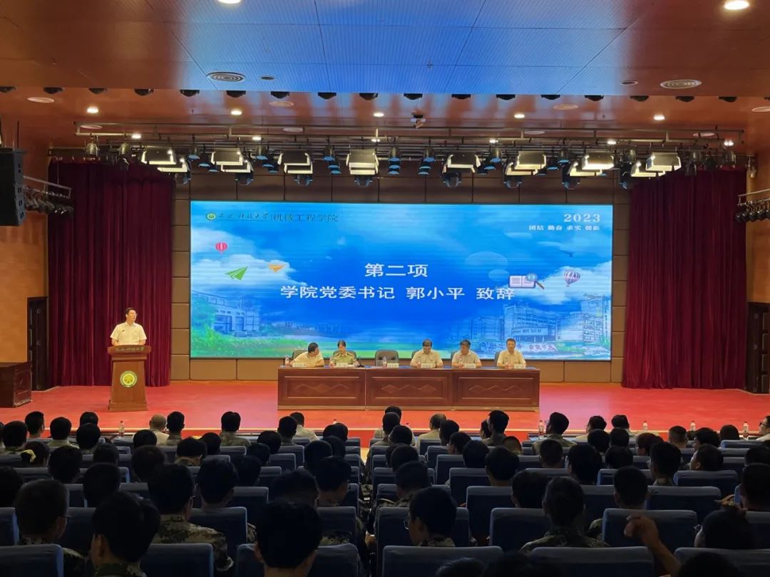 院长曹现刚教授代表学院全体师生员工向来自祖国各地的472名新生表示热烈的欢迎和衷心的祝贺,介绍了学院历史沿革、办学条件、人才培养、科学研究、社会服务、文化传承与创新等情况,鼓励新生向身边的优秀榜样学习,勇担科技强国建设的时代使命,并寄语新生要坚定理想,志存高远;勤奋学习,求实创新;正视挫折,勇于挑战,为自己大学四年谱写精彩的华章。