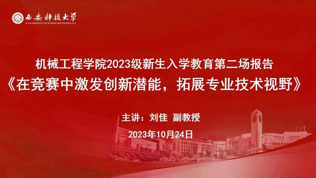 刘教授向大家介绍了与机械学科密切关联的“全国大学生先进成图技术与产品信息建模创新大赛”“全国三维数字化创新设计大赛”分别在校赛、省赛、国赛以及年度赛、精英联赛中关于“赛项”“团队构成”“备赛方式”等具体要求;重点介绍了“全国三维数字化创新设计大赛”中“数字工业”“数字文化”“元宇宙”等开放赛项;介绍了“AMD设计师笔记本”创新设计专项挑战赛、机器视觉(MV)专项挑战赛、元宇宙数字人创作专项挑战赛、智能汽车/无人车专项挑战赛等命题挑战赛等有关内容。阐述了命题挑战赛是为了引导与时代同频,与热点和拍,与需求导向,关注“社会关注”,结合行业、企业应用,关切“急难愁盼”,面向实际的数字化创意、创造、创新和创业实践,体现赛事的命题性、时效性、热点性、针对性、灵活性、趣味性、参与性等主旨。报告中介绍了学校虚拟技术培训基地建设以及创新型人才培养情况,通过阐释VR(Virtual Reality)、MR(Mixed Reality)、AR(Augmented Reality)在企业的不同领域的应用,增强了大家对虚拟技术的认识。刘教授通过讲述在虚拟技术培训基地的实践中不断成长,最终走向虚拟技术开发的职业发展优秀学生的奋斗故事,勉励同学们坚持内心的热爱,自信勇敢、勇于挑战自我,不断激发自身创新潜能,在竞赛参与过程在不断夯实专业技能,建立专业网络,丰富个人简历,为未来职业生涯发展夯实基础。在一个半小时的报告会中,刘教授的报告幽默风趣、干货满满、妙语连珠,博得与会师生的阵阵热烈的掌声。同学们纷纷表示本次报告信息量很大,开拓了大家的视野,对新工科背景下机械专业的发展机遇与挑战有了更深层次的了解,加深了同学们对未来职业规划和发展带来了新的思考。