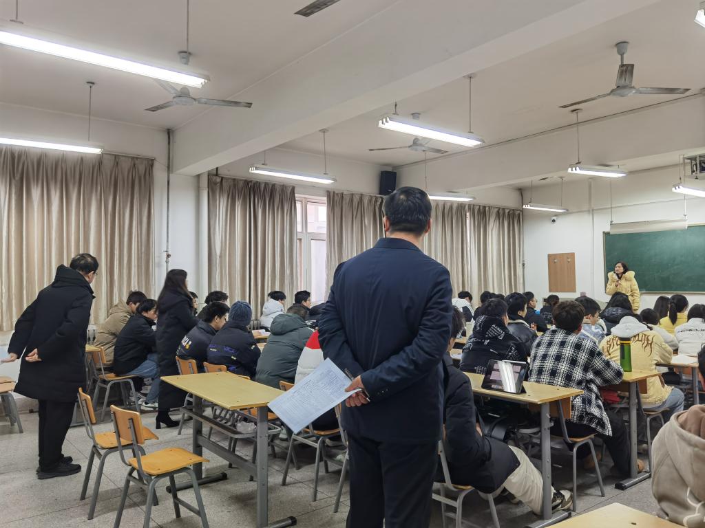 四是开展新学期教学检查。2月26日-27日,我院开展学期初教学秩序进行大检查,学院党委书记郭小平、院长曹现刚、副书记尹弘、副院长钟斌等班子成员和学院教学刘华旭组成检查组,主要检查骊山校园本科生教学秩序等情况,检查组实地查看教学安排、教材发放、师生到课、教学秩序、课堂纪律等,询问了解有关情况,听取师生意见和建议。整体来看,学院新学期教学准备充分,教学设备运行良好,任课教师授课认真,准备充分,学生听讲认真,师生积极互动,课堂气氛活跃。展示了学院师生在新学期良好的精神风貌,为本学期进一步做好课堂教学质量提升,培养优良教风和学风增强了信心,奠定了良好的开端。