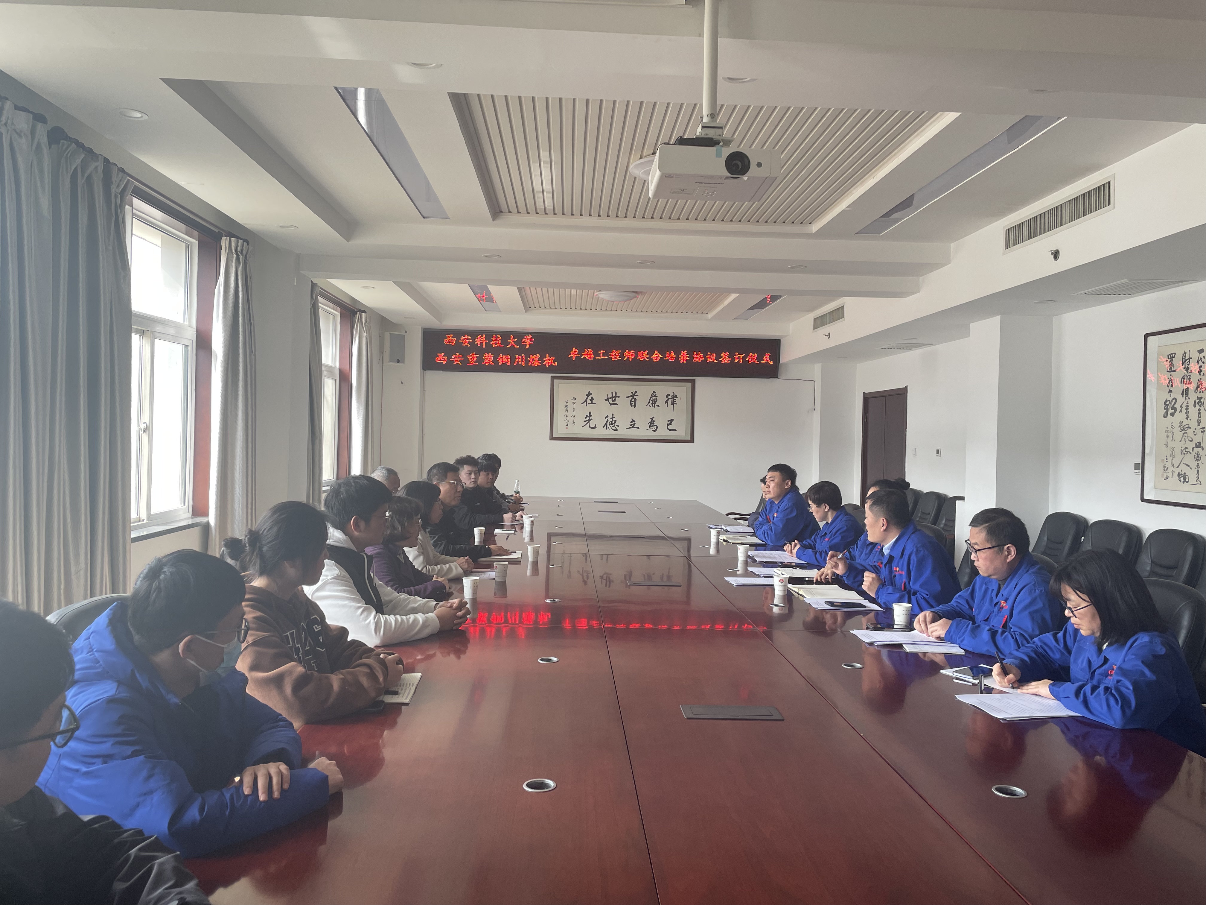 西安重装铜川煤矿机械有限公司董事长宋晓军对郭小平书记一行表示热烈欢迎。公司副总经理陈克华主持导师见面会,双方就校企联合培养合作方向和发展前景进行了交流探讨,现场签署协议并就毕业设计进行了具体安排。郭小平表示,校企共建“机械设计制造及其自动化卓越工程师联合培养实践基地”,旨在发展新质生产力,创新人才培养机制,提高人才培养质量,激发学生创新活力,进一步培养大学生吃苦耐劳精神、实践动手能力和创新精神。希望同学们珍惜宝贵的学习机会,严格遵守企业各项管理规定,服从组织管理,高度重视安全生产,认真学习专业技能,高质量完成毕业设计。