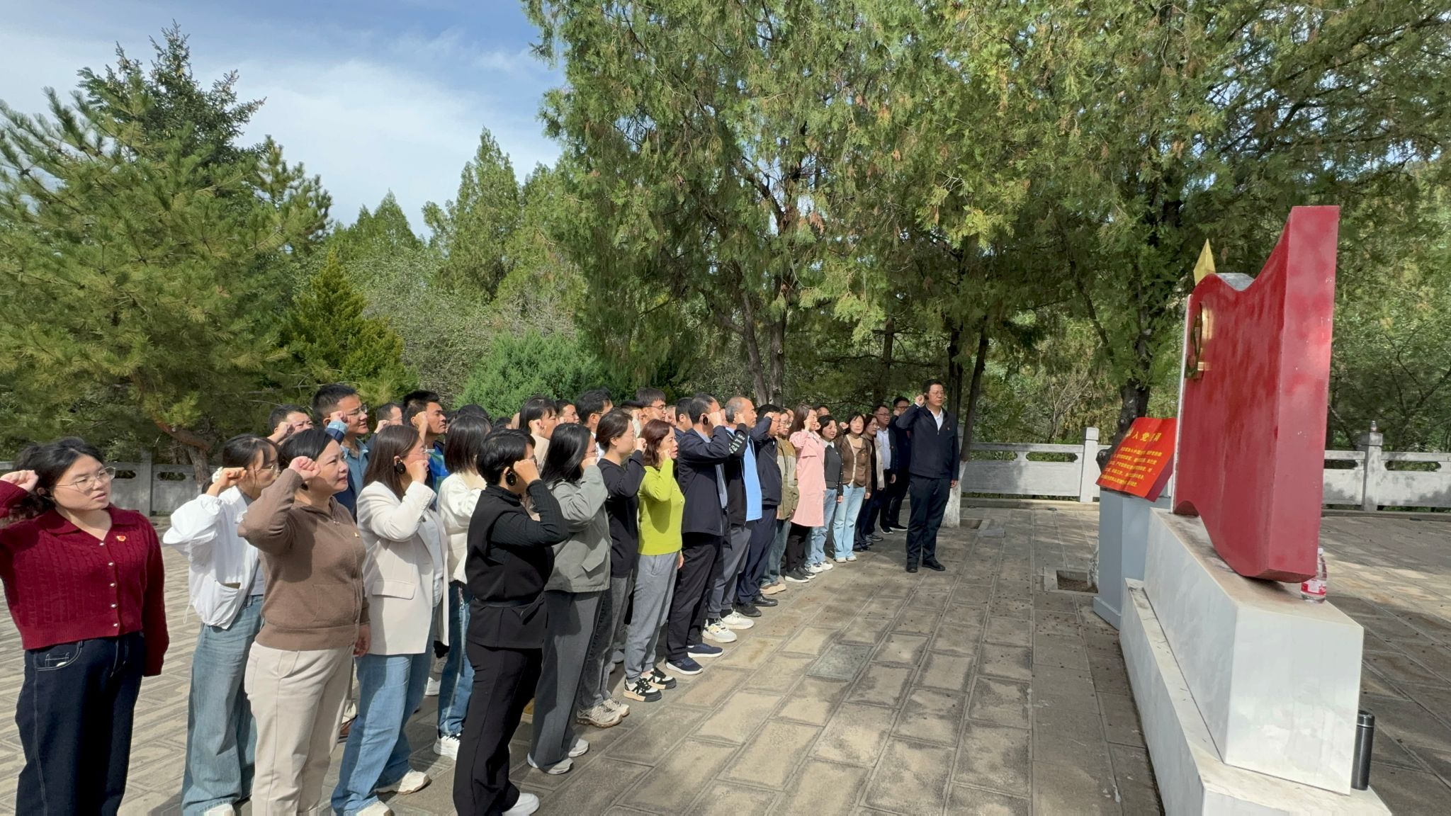 9月20日上午,学习实践团成员刚下火车就来到杨家岭革命旧址,跟随讲解员的脚步共同参观了中共中央驻地旧址和毛泽东等老一辈革命家旧居,通过深入细致地讲解,大家深切体会革命岁月中中国共产党人的坚定信念与艰苦奋斗精神。下午,学习实践团一行前往延安标志性建筑——宝塔山。在巍巍宝塔下,全体党员教师庄严列队,面向党旗重温入党誓词,铿锵誓言回荡在山谷之间,进一步坚定了大家的理想信念和初心使命。随后,前往延安革命纪念馆,通过大量珍贵的历史照片、文物和场景复原,通过现场讲解,系统回顾了党中央在延安十三年的光辉历程,全面了解了党中央在延安时期的重大决策和历史贡献,进一步理解了延安精神的内涵与时代价值。