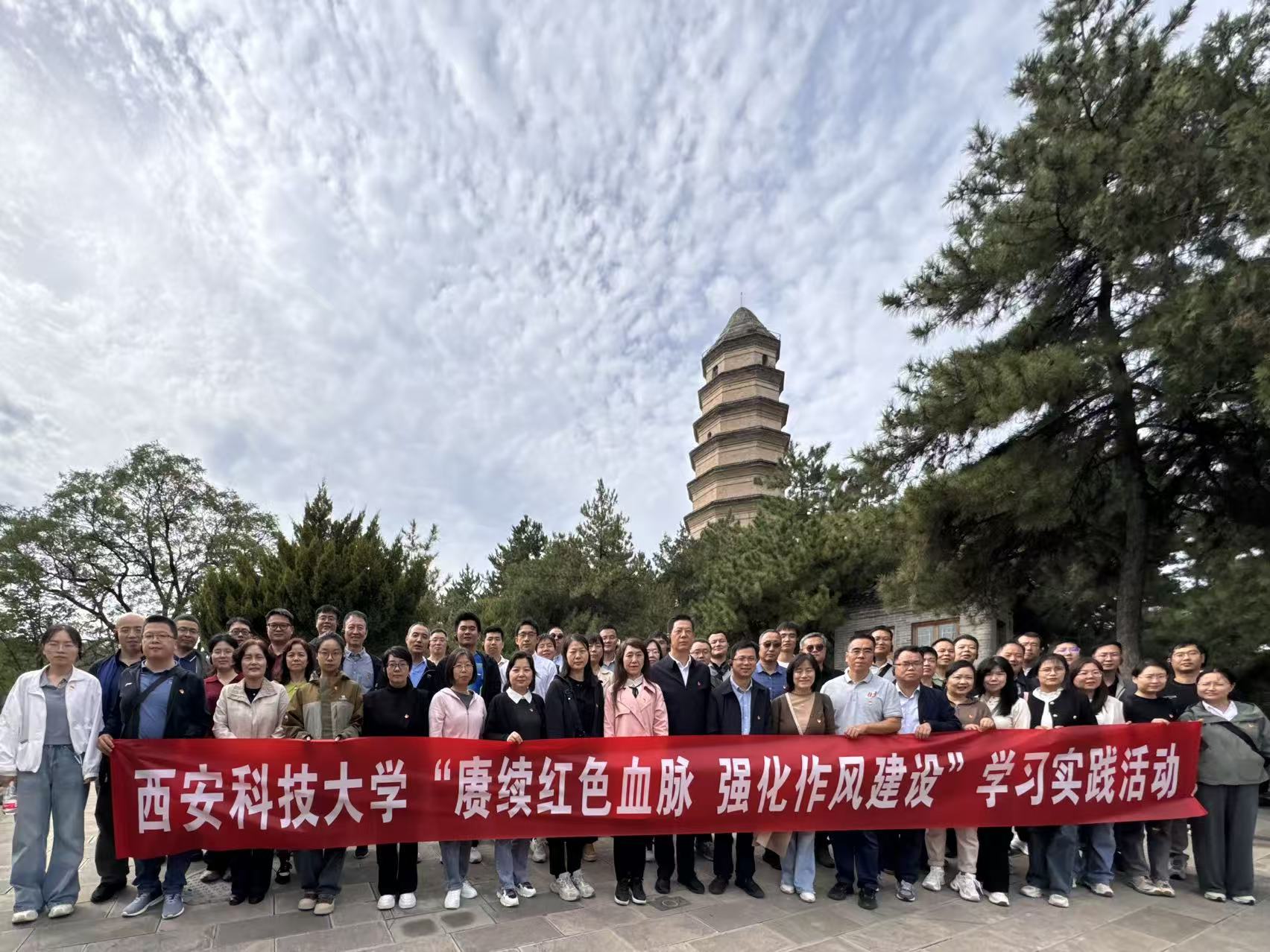 为深入学习贯彻党的二十大和二十届二中、三中全会精神、习近平总书记历次来陕考察重要讲话重要指示精神以及全国、全省教育大会精神,扎实开展中央八项规定精神学习教育,进一步激励全体教师不忘立德树人初心、牢记“为党育人、为国育才”使命,以实际行动积极投身教育强国建设实践,9月20日至21日,机械学院和地环学院党委负责人带队,组织50余名教师前往革命圣地——延安,开展为期两天的“赓续红色血脉,强化作风建设”学习实践活动。