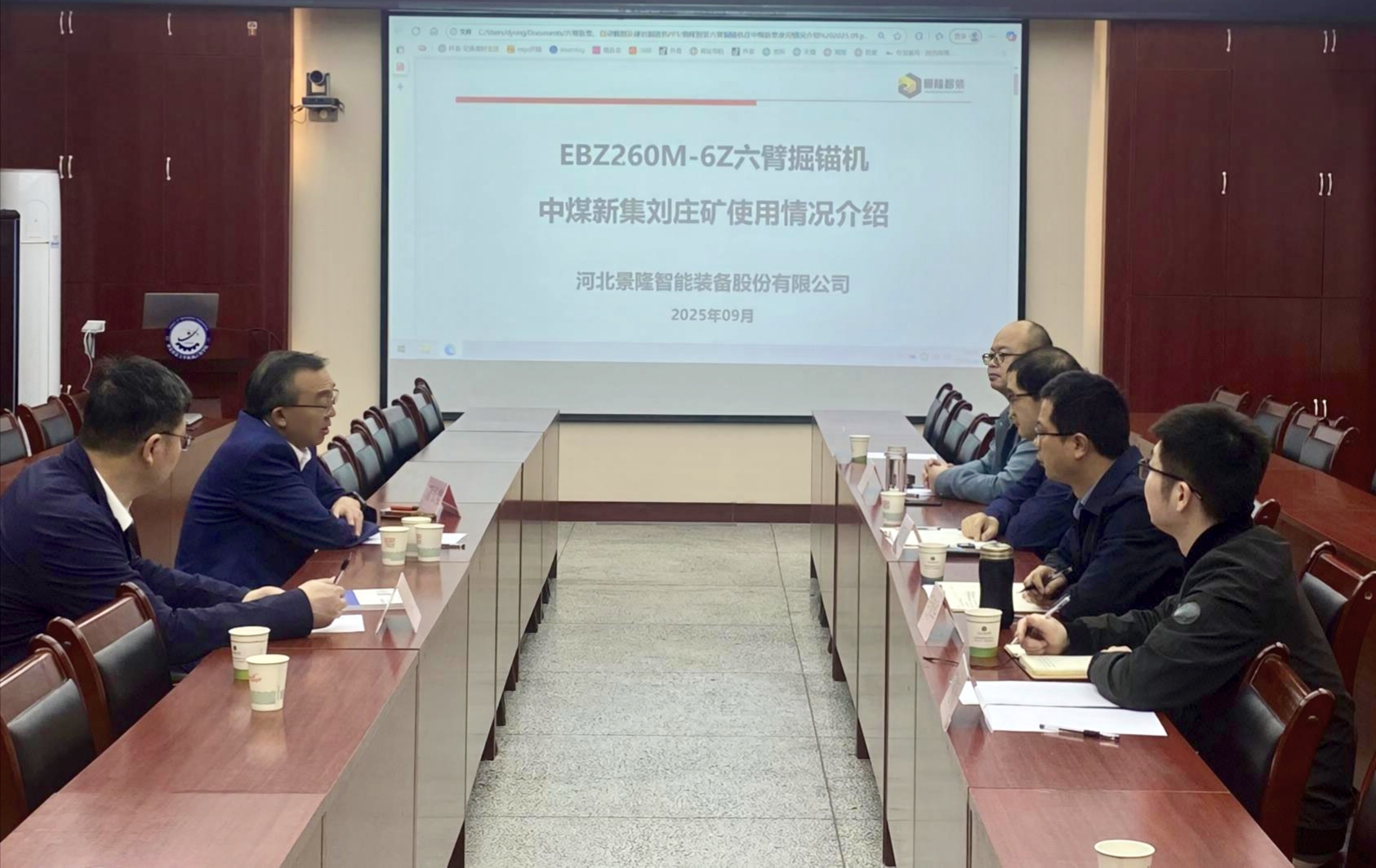 景隆重工团队重点介绍了适应复杂地质条件的六臂掘锚机、解决硬岩掘进难题的悬臂式掘进机等新装备的应用进展,并围绕“人工智能+”自动截割系统的技术突破与发展前景进行了详细阐述。双方就复杂地质条件的快速掘进成套装备的关键技术研发、工程应用难点及未来合作方向进行了深入交流。