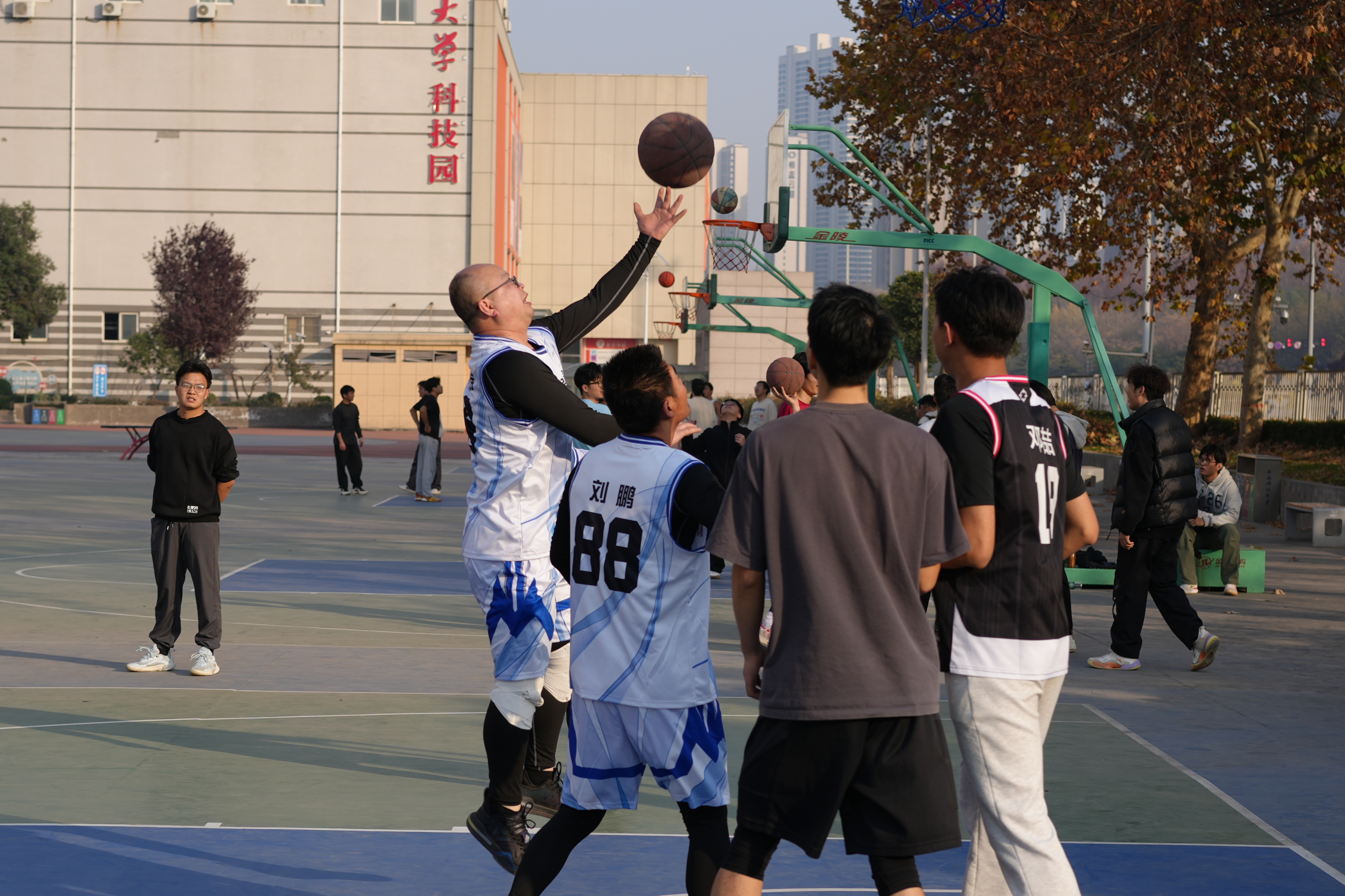 比赛采用上下半场、每半场2节、共4节,每节12分钟的赛制。随着一声哨响,研究生代表队以朝气蓬勃的姿态活力登场,他们身姿矫健、奔跑迅猛,凭借灵活的跑位与娴熟的战术执行,快速转身、果断远投、关键时刻的稳定罚球,蓬勃的青春朝气与不服输的劲头感染了在场每一个人。教工代表队则展现出沉稳老练的竞技风采——精准的传球穿越防线,稳健的防守筑牢壁垒,果断的投篮直入篮筐,每一个动作都彰显着成熟运动员的良好素养;整场比赛既有紧张激烈的对抗,也充满了欢声笑语与相互鼓励,生动体现了“友谊第一,比赛第二”的体育精神,场上师生队员精神专注,配合默契,每一次精彩的攻防都引得场边掌声不断,师生彼此在并肩竞技拼搏与加油喝彩的鼓励中不断拉近距离,情谊在运动中悄然升温。经过四节激烈角逐,研究生代表队最终以60:52的比分赢得本次友谊赛的胜利。学院领导分别颁发了最佳组织奖、冠军团队奖及最出色队员奖。