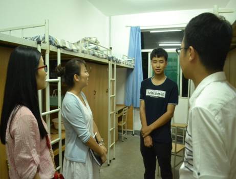 2016年9月7日20:00,米兰milan党委副书记李婉丽、2016级新生辅导员程鹏、杨芝,以及2016级辅导员助理深入新生宿舍慰问走访,及时了解关注新生报道、适应情况,进行了防火、防盗、防骗安全防范教育和理想信念教育,并对新生的大学生活提出了希望和积极建议。