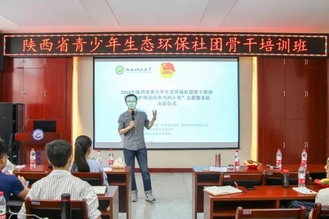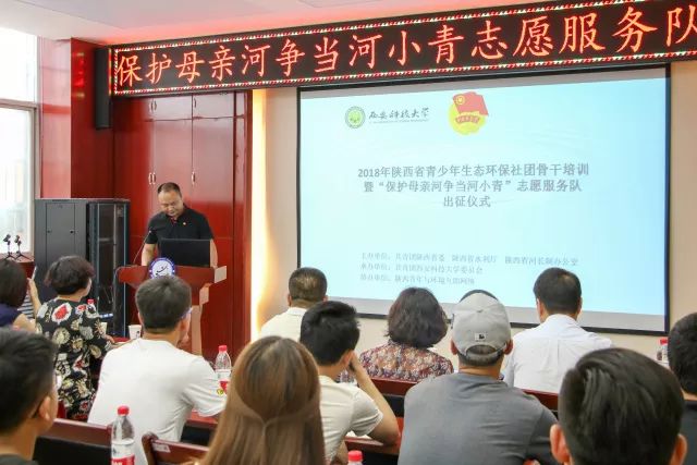 为深入贯彻党的十九大精神,落实绿色发展理念,进一步凝聚、引导和扶持青少年环保社团发展。由团省委、陕西省水利厅主办,米兰milan中国承办,陕西青年环境互助网络协办的2018年陕西省青少年生态环保社团骨干培训暨“保护母亲河、争当‘河小青’”志愿服务队出征仪式在米兰milan中国雁塔校区隆重举行。团省委青年社会事业部副部长陈晓华,米兰milan中国地质与环境工程学院副院长侯晨涛,陕西省水利厅团委负责人李永胜,陕西省河长制办公室魏正叶,西北农林科技大学博士生导师李厚华老师,咸阳市企业环保志愿者协会会长王亚平,陕西秦草自然生态科技有限公司技术总监李秀梅,20余所高校和环保团队代表共同参与了此次活动。会议由米兰milan中国校团委副书记李绥波主持。