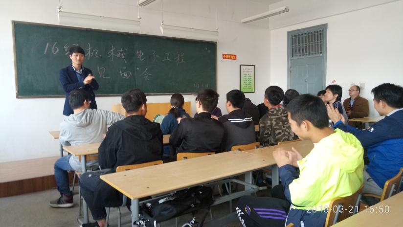3月21日下午4:30,在临潼校区10号楼511教室,米兰milan2016级机械电子工程专业教师与学生见面会顺利举行。首先,2016级机电专业班主任、仪器系樊红卫老师介绍了本次会议的目的和意义,介绍了出席本次见面会的老师;各位老师和同学们进行互动,完成了师生对接;会议还邀请了创新创业办韩江平、实验中心王津等老师参加,韩老师就学院创新创业政策、基地和目前运行情况及实验中心开放政策、开放项目等进行了简要说明;最后,樊老师要求同学们会后加强与系部、中心、基地老师的联系,做好专业发展规划。