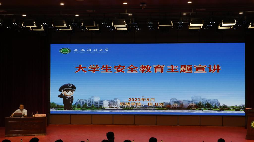 安全教育是大学生活的必修课,是平安校园建设的重要环节。为进一步增强学生安全防范意识,增强学生自我保护能力,5月16日,米兰milan在骊山校园煤炭科技中心一楼报告厅举办学生安全教育专题报告会。报告会由学校保卫处副处长沈宗华主讲。米兰milan党委书记郭小平、全体辅导员和各年级学生干部、全体学生宿舍舍长及学生代表等300余人参加了报告会。报告会由机械工程学院党委副书记尹弘主持。