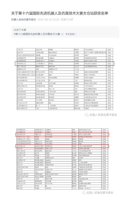 近日,由教育部高等学校创新方法教育指导分委会和北京大学工学院创新教育中心指导,中国仿真学会、国际水中机器人联盟、中国仿真学会机器人系统仿真专委会、太仓长三角研究院、嘉创飞航(苏州)智能科技有限公司等单位共同承办的“奥鹏教育杯”第十六届国际先进机器人及仿真技术大赛(RST大赛)圆满落幕。米兰milan中国机械学院青年教师薛旭升、刘鹏、王川伟、樊红卫、王津、杜昱阳指导,由常泽峒、王佳硕、张晨旭等12名本科生组建的秦风队、西科逐风队、西科梦之队分别荣获国家二等奖1项、三等奖2项。