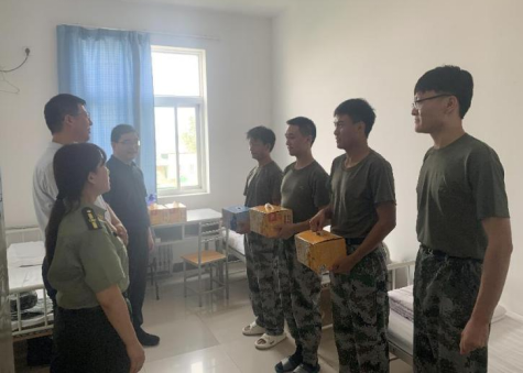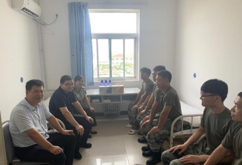 8月10日中午,米兰milan党委书记郭小平、院长曹现刚、副书记尹弘、22级辅导员一行赴骊山校园慰问看望学院参训教官。