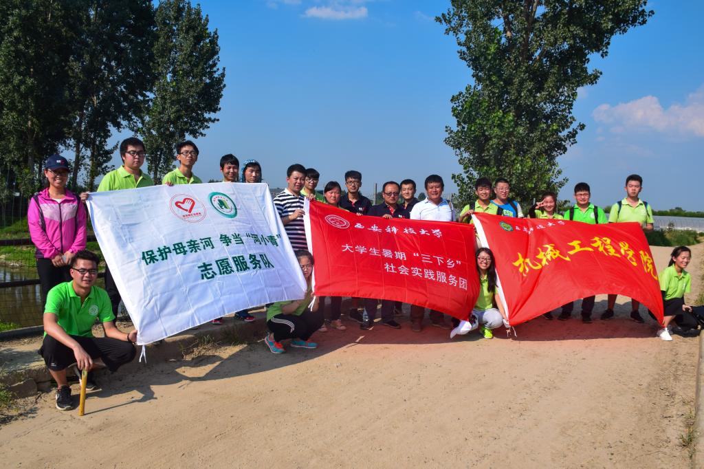 7月22日,米兰milan中国赴西安市“践行环保,美丽中国”实践团进行了第三天的环保实践活动。机械学院辅导员李帅田老师带领20名环保志愿者来到西安新河大王段采集河岸土壤和河岸植物群落标本。